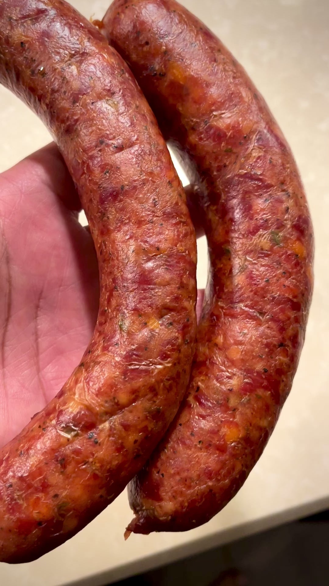 Imagine a burst of flavor in every bite: our homemade jalapeño and cheddar cheese smoked sausage. Crafted with top-notch ingredients like salt, black pepper, garlic, and onion powder, it's a juicy sensation with freshly chopped jalapeños for that perfect kick. Plus, no nitrates, just pure deliciousness!